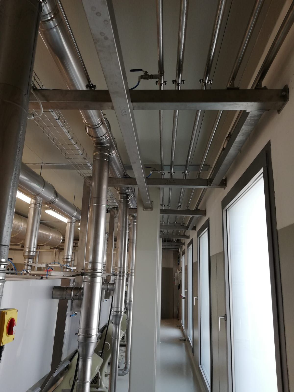 Si tratta di sistemi di tubazioni, collegamenti e apparecchiature che garantiscono il funzionamento dei cicli produttivi, trasportando fluidi, aria o gas all’interno dello stabilimento.